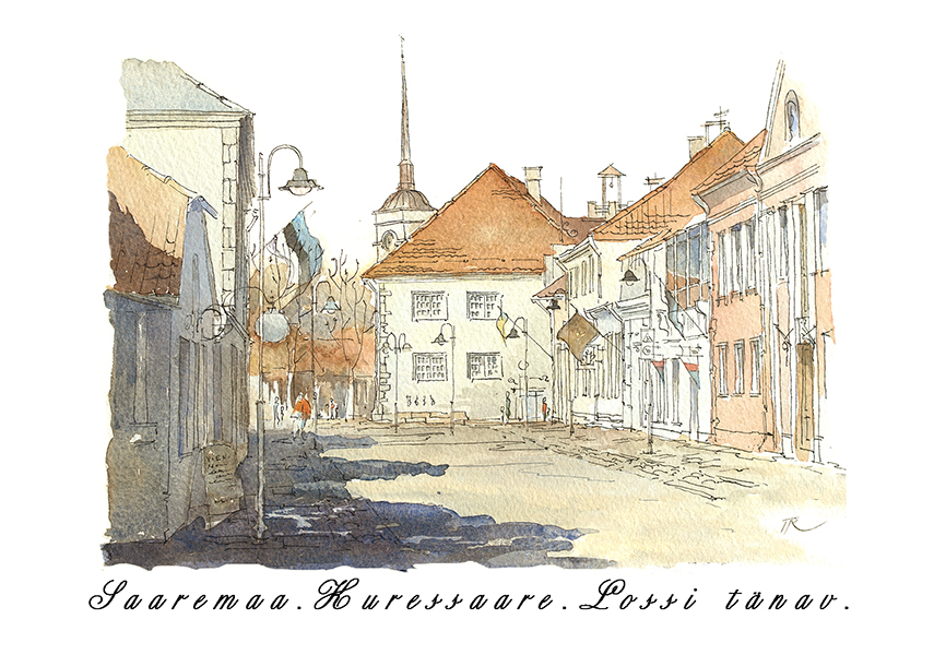 Postkaardid on pühendatud olulistele kohtadele Kuressaare linnas (Eesti). Digitaalsed prindid siledale matepaberile.